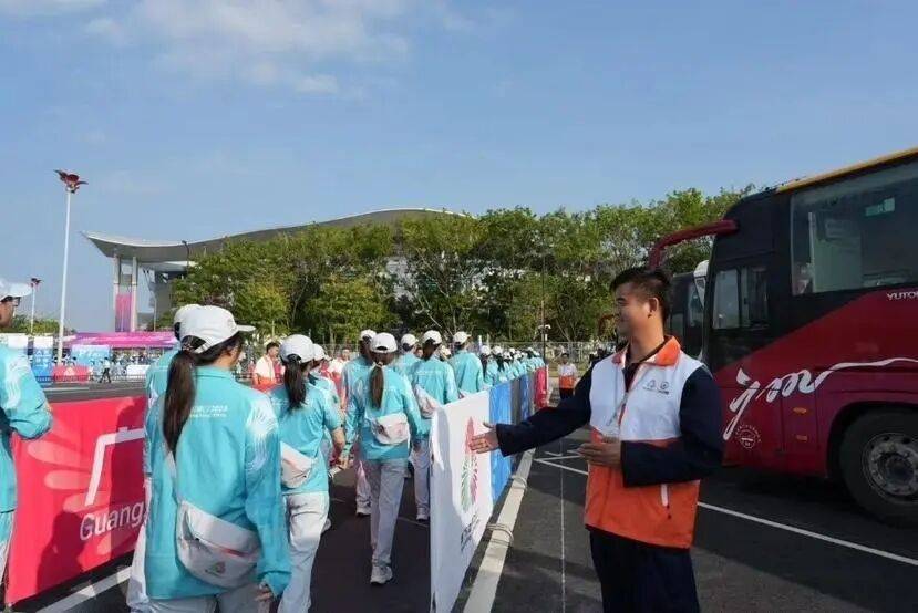 天河公园至广东奥体中心的工作人员专线,确保第一批工作团队人员的准时到岗。开幕式结束,嘉宾、观众、演职人员开心散去,工作人员仍需坚守到最后,深夜凌晨,市交通运输部门又组织开行了广东奥体中心至天河体育中心的工作人员返程专线;同时,在奥体中心周边安排了100台巡游出租车运力,引导网约出租车平台加强奥体中心周边网约出租车运力供给,采用“公交+出租”方式进行“接驳”“兜底”运输,确保工作人员安心、平安返家。